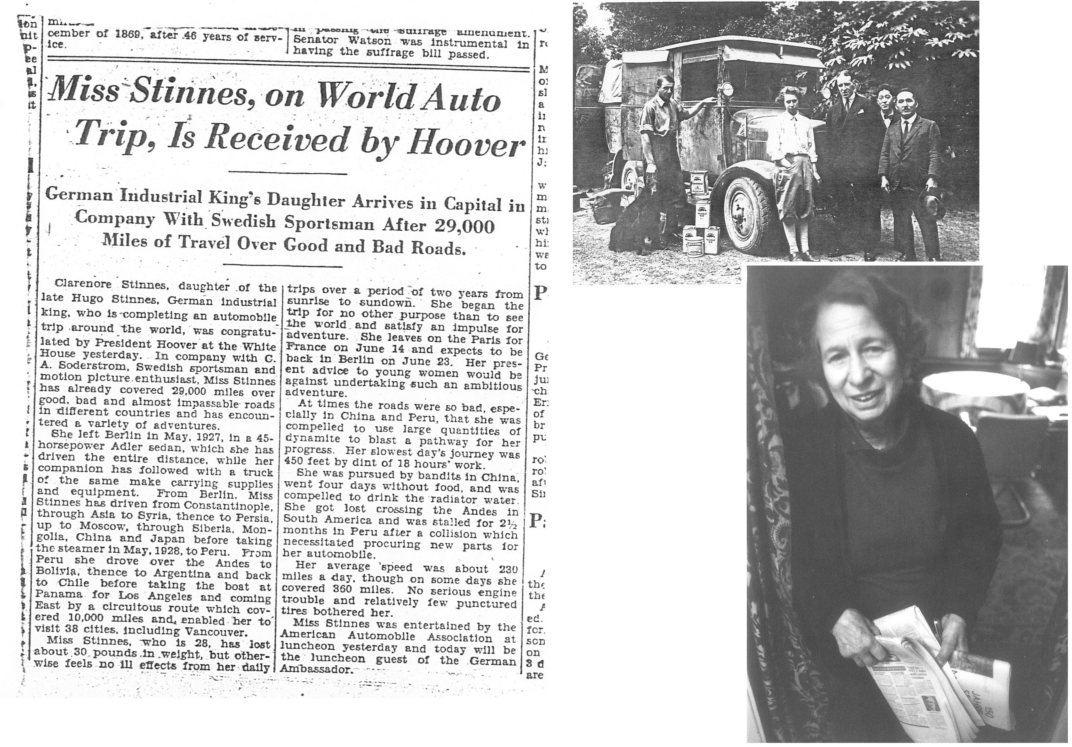 Stinnes. Sie fuhr 1927-1929 zusammen mit dem Kameramann Söderström erstmalig im