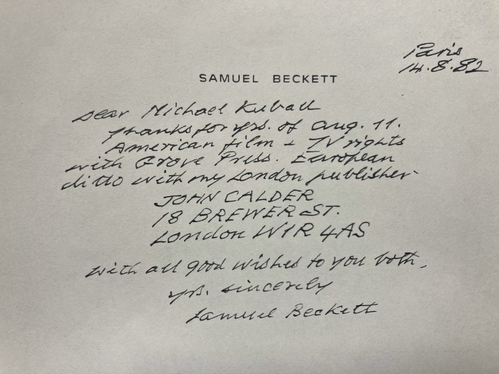 Beckett stirbt im Dezember 1989. Daraufhin scheitert die Realisierung des Spielfilmprojekts